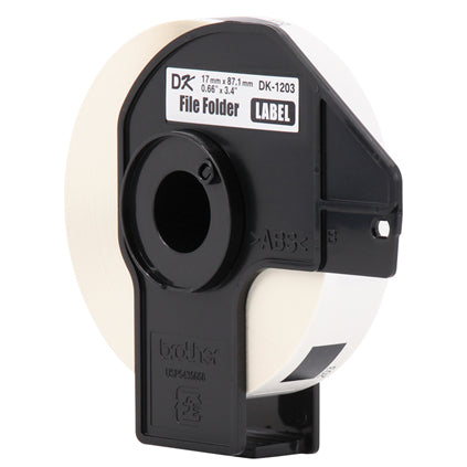 Brother DK-1203 labels have been developed to work in harmony with your Brother QL label printer. They are available in (0.66 in x 3.4 in) Standard File Folder White Paper Labels and come in rolls of 300 labels providing enough labels for even the most complex labeling project. DK labels can be used for file folder labels, allowing you to have professional files that are easy to read.