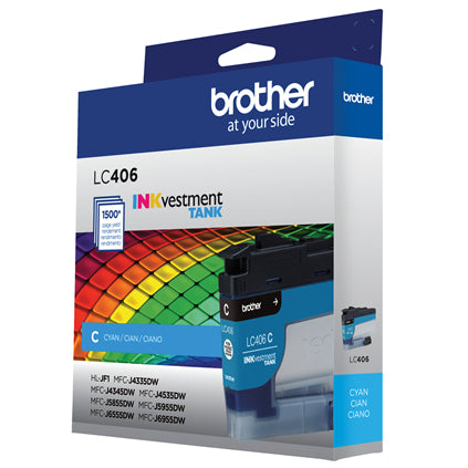 - Brother Genuine LC406C Standard Yield Cyan INKvestment Tank Ink Cartridge.