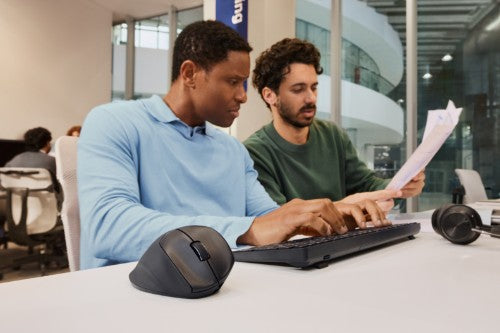 Experience ergonomic benefits without turning your workflow upside down. This mouse features a 21-degree semi-vertical tilt design that supports a more natural hand position for comfort and offers the familiar feel of a standard mouse.