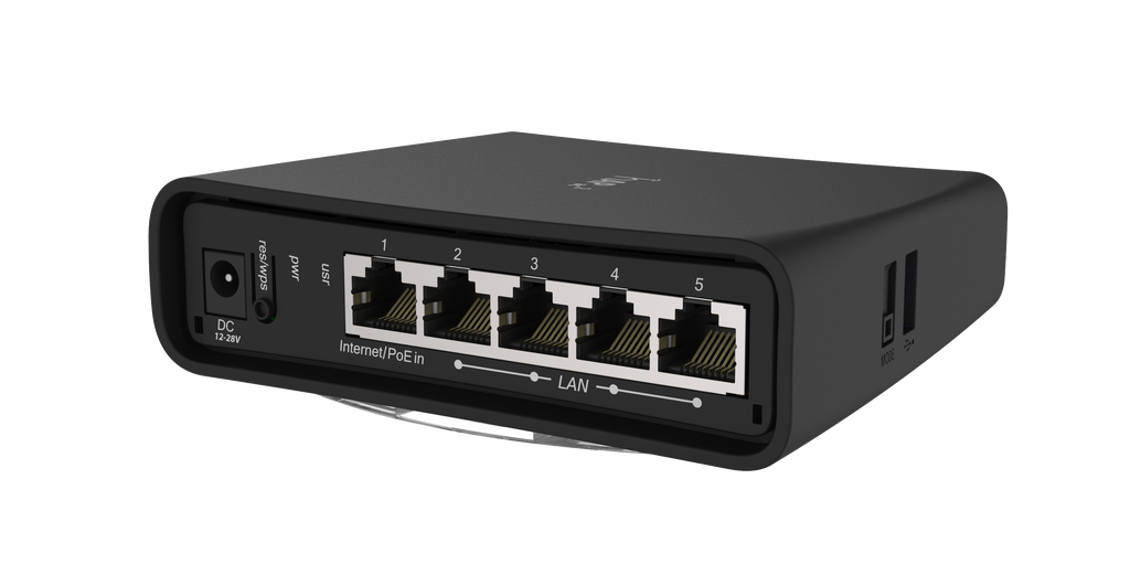 The hAP ac² is a Dual-concurrent Access Point, that provides Wifi coverage for 2.4 GHz and 5 GHz frequencies at the same time. Five 10/100/1000 Ethernet ports provide Gigabit connections for your wired devices, USB can be used for external storage or 4G/LTE modem, and device supports IPsec hardware acceleration.