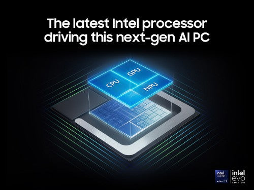 The latest Intel processor driving this next gen AI PCExperience a new level of transformative AI performance on Galaxy Book5 Pro 360 with the super fast Intel® Core™ Ultra processor (Series 2), upgraded graphics and an advanced NPU capable of up to 47 TOPS.