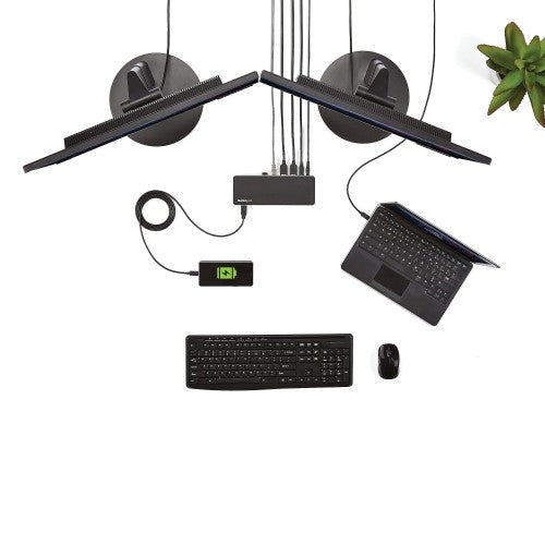 The USB-C docking station with Power Delivery will power and charge (up to 60W) your laptop, while powering your devices.