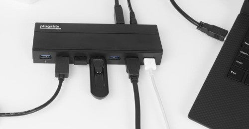 7-Port USB 3.0 Hub With Two Powerful 1.5A Charging PortThe Plugable 7-Port USB 3.0 Hub with 36W Power Adapter (USB3-HUB7C) expands USB connectivity by enabling up to seven USB 3.0, 2.0 and 1.1 devices to be added to any USB 3.0 or 2.0 capable desktop, laptop, or tablet computer. Supporting standard USB 3.0 transfer rates up to 5Gbps (640MBps) to allow data to move quickly between devices, ideal for high-throughput devices such as USB external hard drives, flash drives, and USB graphics adapters.