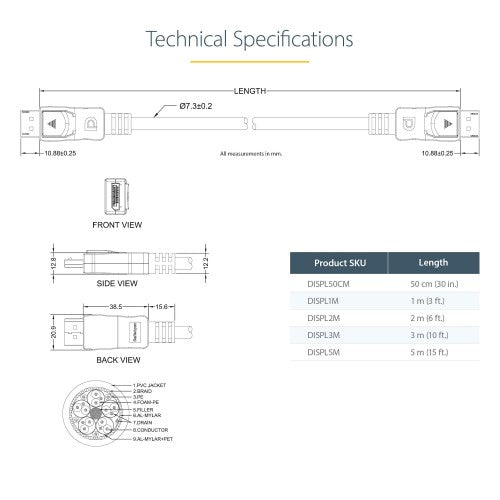 StarTech.com DISPL50CM DisplayPort cable 19.7" (0.5 m) Black
