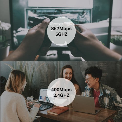 Wireless AC technology means Archer T3U delivers connections that are up to 3x faster than with the previous Wireless N standard. High-speed WiFi (up to 867 Mbps over the 5 GHz band and 400 Mbps over the 2.4 GHz band) means Archer T3U is able to support all your online activities, from HD video streaming to lag-free online gaming and web surfing.