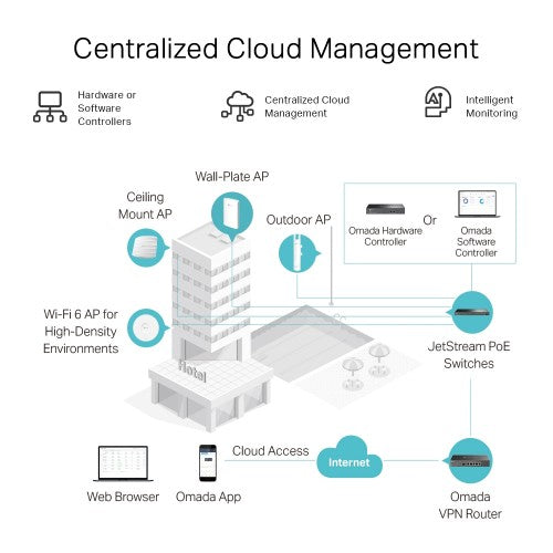 - Centralized Management: Cloud access and Omada app for convenience and easy management