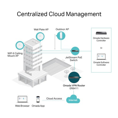 - Centralized Management: Cloud access and Omada app for ultra convenience and easy management