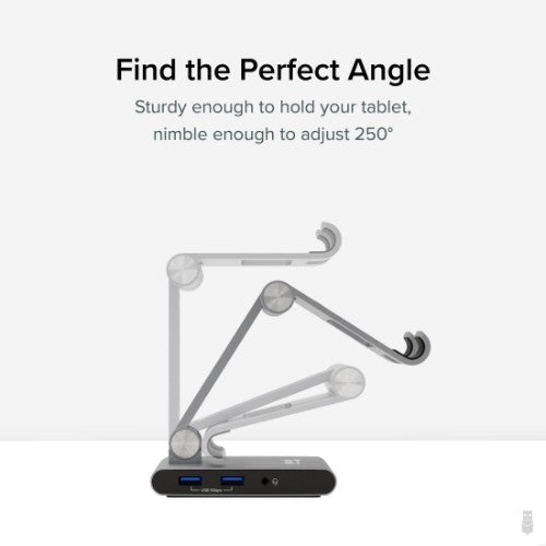 Hub and Stand in OneAs a hub, you get port expansion. As a stand, you get solid aluminum construction that manages to be incredibly durable and still light enough to carry with you. But don’t let its potential for portability fool you, the UDS-7IN1 still has enough heft to hoist your iPad Pro 12.9. And the feeling of quality continues through to the hinges, too. With enough tension to stay put when you tap away at the screen, you might be surprised by the satisfying slide you experience when adjusting the stand for the perfect angle. And if you do decide to take it with you, the UDS-7IN1 folds flat enough to fit in your bag.