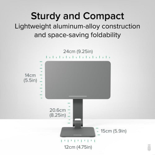 The iPad Air and iPad Pro magnetic stand excels in its adjustability. Featuring a 360° rotatable iPad magnetic mount panel, and 180° adjustable top and bottom hinges, it provides endless possibilities for viewing angles. Perfect for video calls, working, or creating digital art, the stand adjusts to meet your needs. Plus, it's compact and folds flat so you can take it with you.