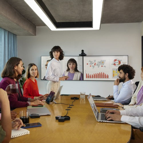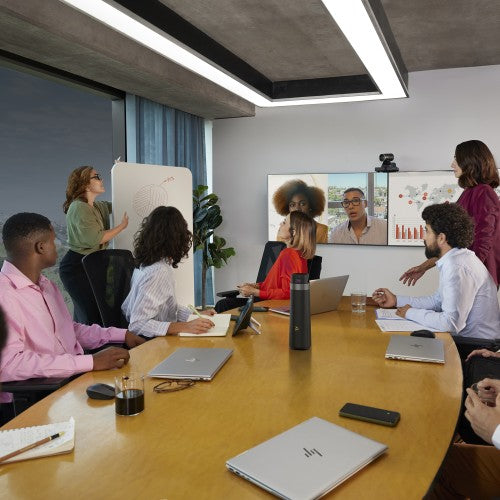 The Poly Studio E60 smart optical zoom camera lets everyone see what’s going on in the room. Presenter tracking and AI-driven framing modes make sure the focus stays on the all-important action so nobody misses a beat, no matter where they are.