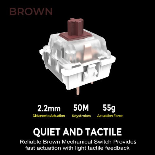 A Touch of Class Tactile Brown Mechanical SwitchMaximize your keyboarding efficiency with the EasyTouch 680’s “brown” mechanical keys that offer superior tactility designed to last up to 50 million keystrokes.