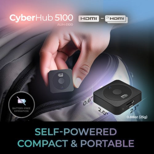Plug & PlayThe CyberHub 5100 features universal compatibility with plug and play simplicity. It works with any device that features an HDMI or HDMI 2.0 port for sustained battery-free operation.