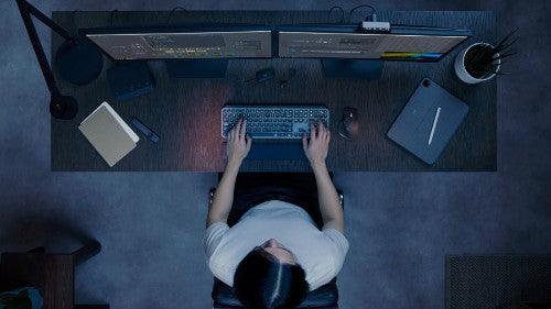 Smart illumination made smarterBacklit keys light up when your hands approach the keyboard and automatically brighten or fade to suit your environment. Control on MX Keys S backlighting duration and brightness in Logi Options+.