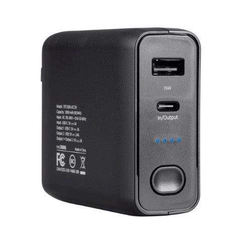 The 4XEM 5000mAh, 2-port up to 15W output for iPhone, Android, and all mobile devices provides you with a mobile power bank and a wall charger in one device. Your charger combines a 5000mAh power bank with a dual port wall charger. The USB type-C port provides up to 15 watts of power, allowing you to charge and power all your USB C devices. You can charge a second device with up to 2.4A of power using the USB Type-A port.
