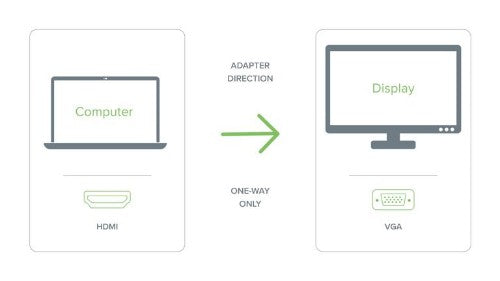 - HDMI TO VGA—Connect a HDMI output on a laptop, desktop, or docking station to a VGA computer monitor or projector