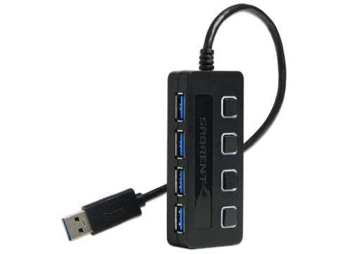 Sabrent 4-PORT USB 3.0 HUB WITH POWER ADAPTER USB 3.2 Gen 1 (3.1 Gen 1) Type-A 5000 Mbit/s Black