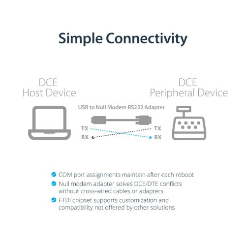 - CORRECT DTE/DCE CONFLICTS: Convert your available USB port into a null modem RS232 DB9 serial port, resolving any DTE/DCE conflicts