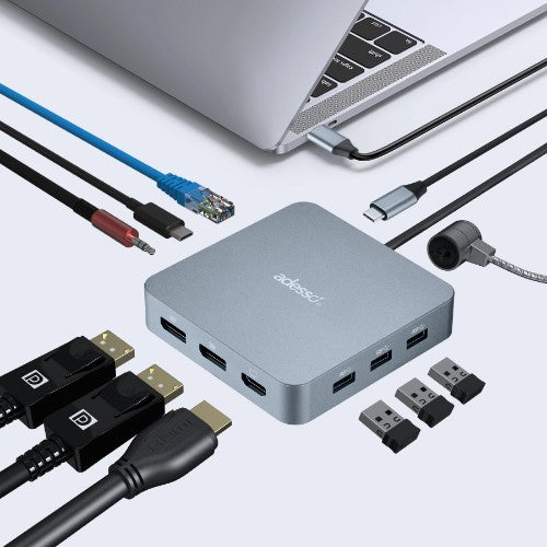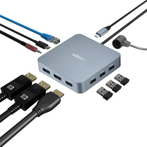 1-IN-1 USB-C Multiport Docking Station Supports Dual Display, HDMI Port, USB 3.2, PD, RJ45, 3.5mm Jack, Peripheral Lock Port (TAA Compliant)