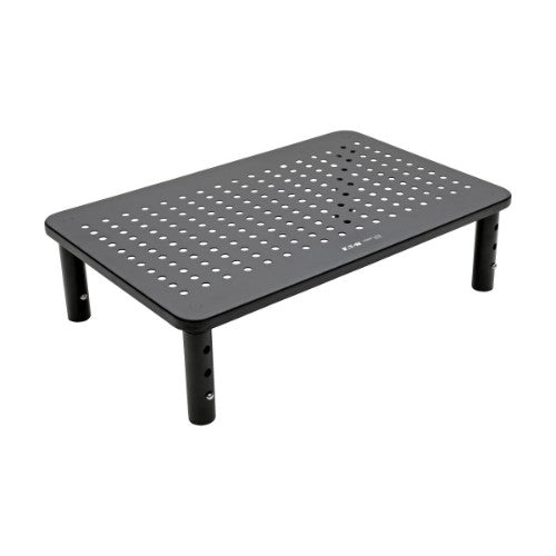 Rugged Metal Construction Supports Up to 44 PoundsThe rectangular metal platform measures 14 x 9 inches and supports monitors, laptops, printers, small televisions and other devices weighing up to 44 pounds. The platform is ventilated to allow proper airflow and help keep your monitor cool. Rubber feet attached to the legs secure the riser in place on a smooth surface. The monitor stand riser assembles in just a few seconds with no tools or permanent mounting required.