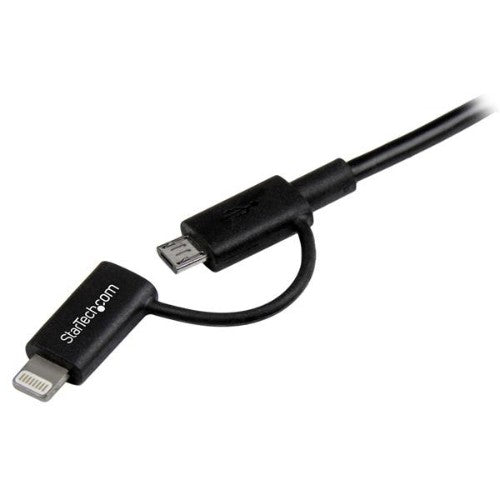 StarTech.com 1m (3 ft) Black Apple 8-pin Lightning Connector or Micro USB to USB Combo Cable for iPhone iPod iPad - Charge and Sync Cable (LTUB1MBK)