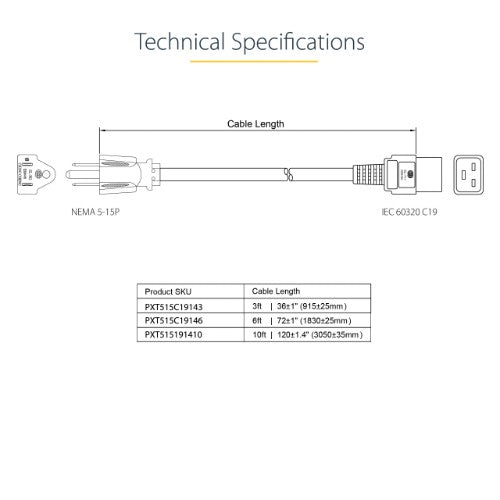 Expertly designed and constructed of high-quality materials, the StarTech.com PXT515C19146 power cord is backed by a lifetime warranty.