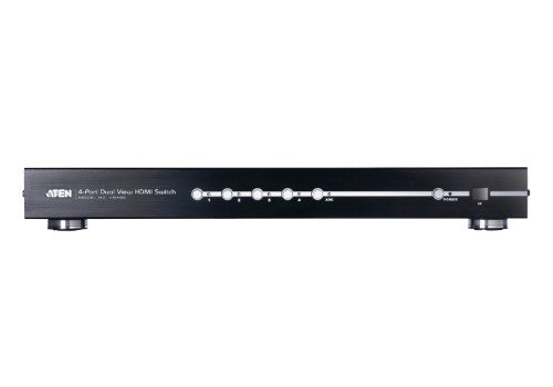 ATEN AT-VS482. Video port type: HDMI, Video in: 4 x HDMI Type A Female (Black), Video out: 2 x HDMI Type A Female (Black). Material: Metal, Product color: Black, Maximum operating distance: 590.6" (15 m). Width: 17.2" (437.2 mm), Depth: 6.24" (158.6 mm), Height: 1.73" (44 mm)